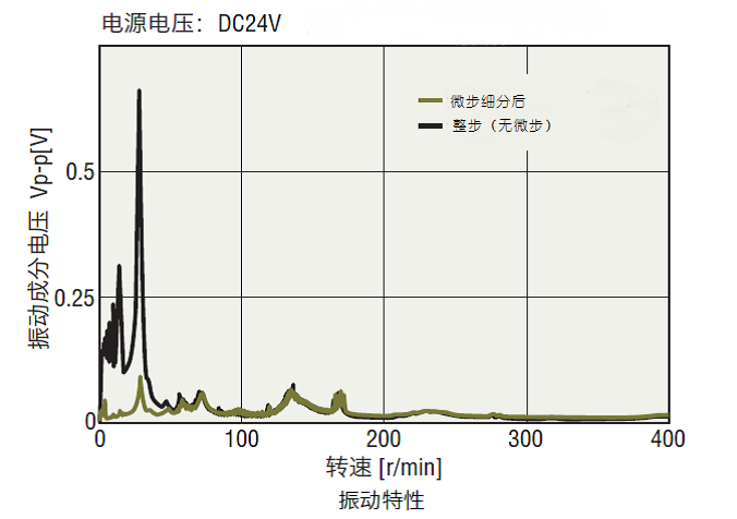 利用微步驅(qū)動(dòng)技術(shù)執(zhí)行步距角的電氣細(xì)分化,電動(dòng)機(jī)運(yùn)轉(zhuǎn)更加平穩(wěn),使低速領(lǐng)域的階段性運(yùn)轉(zhuǎn)更加順暢,并如下圖所示地大幅改善振動(dòng)。